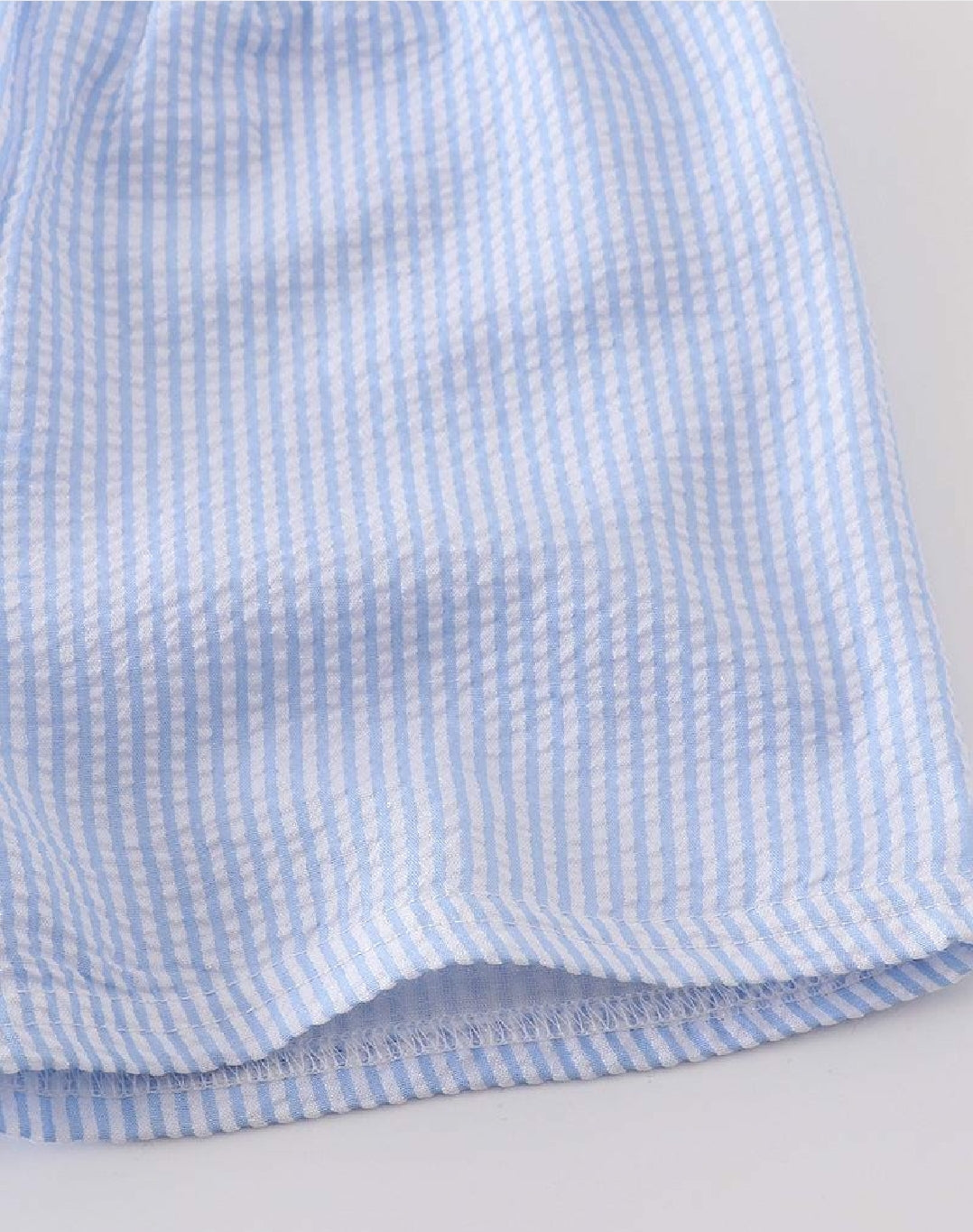 Transform your little one into a fashion statement with our Blue cross embroider smocked set! Embrace the cuteness overload as the delicate cross embroidery and smocked design add a touch of elegance and playfulness. Perfect for any occasion, this set will surely turn heads.