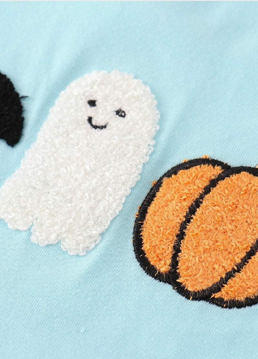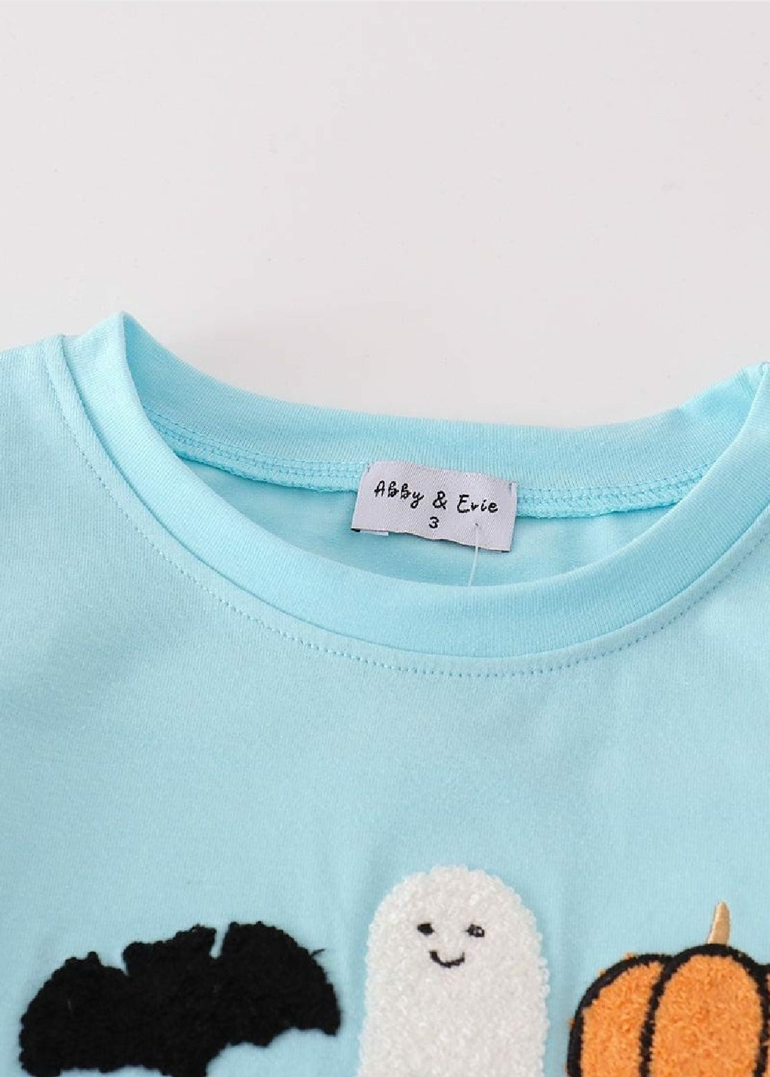 Boy's Boutique Blue Ghost Bat Halloween Plaid Embroidered Embroidery Two Piece Set Matching Sibling