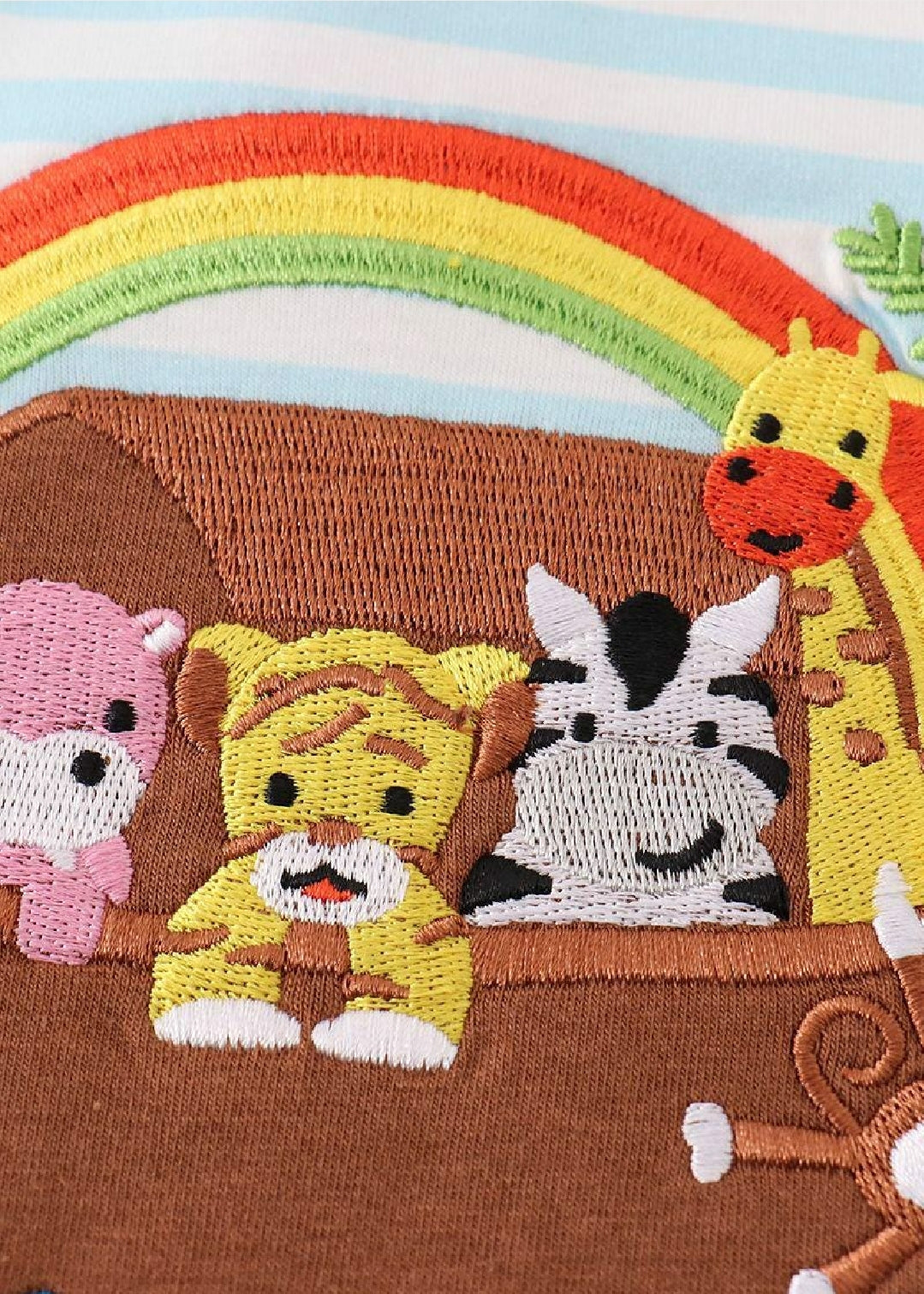 Boy's Boutique Blue Noah's Ark Applique Embroidered Embroidery Stripe T Shirt Top Matching Sibling
