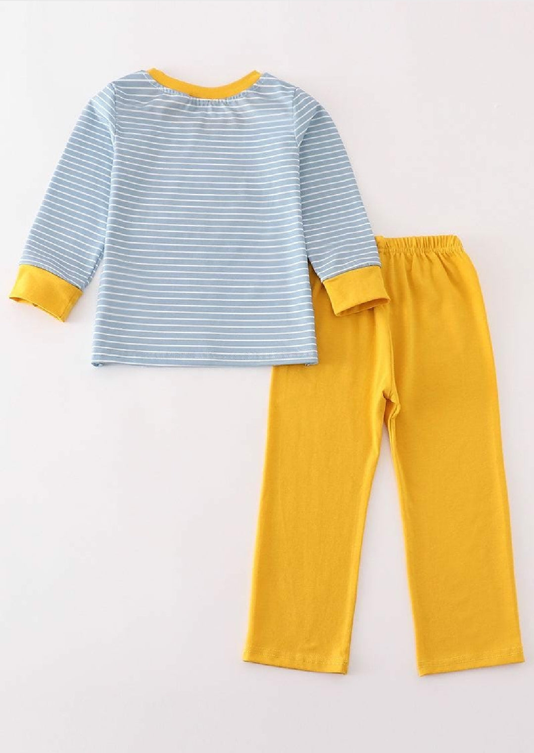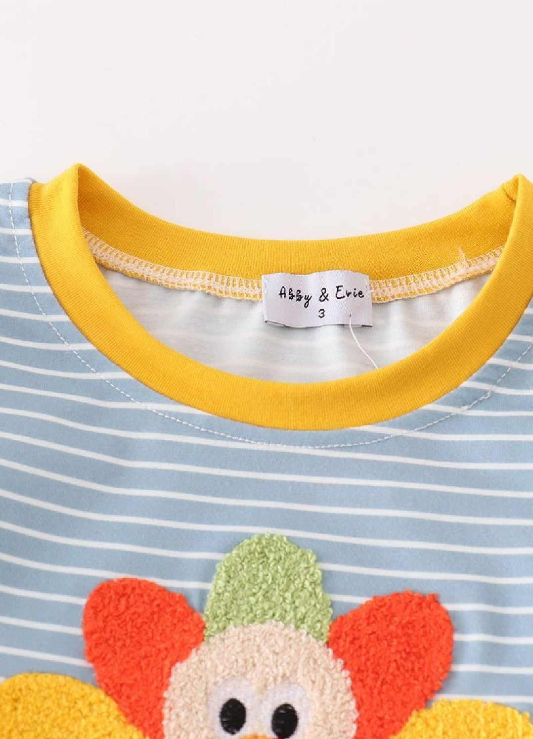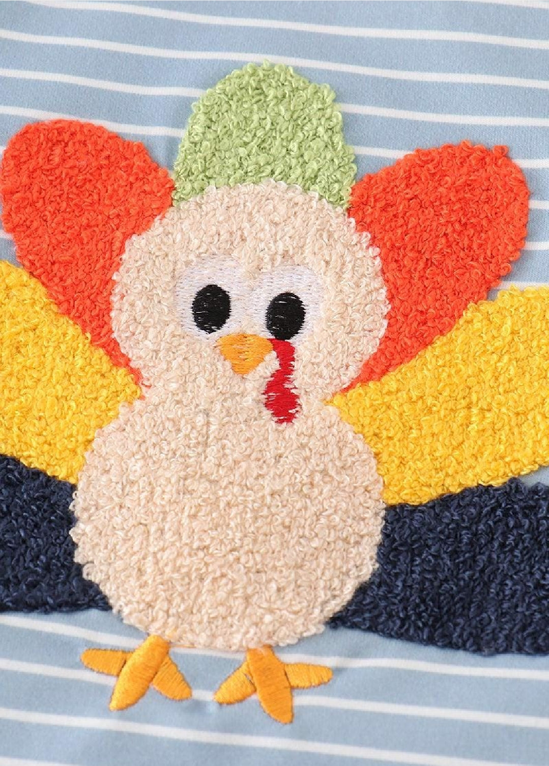 Boy's Boutique Blue Stripe Turkey French Knot Embroidered Embroidery Pants Set Matching Sibling Fall Thanksgiving