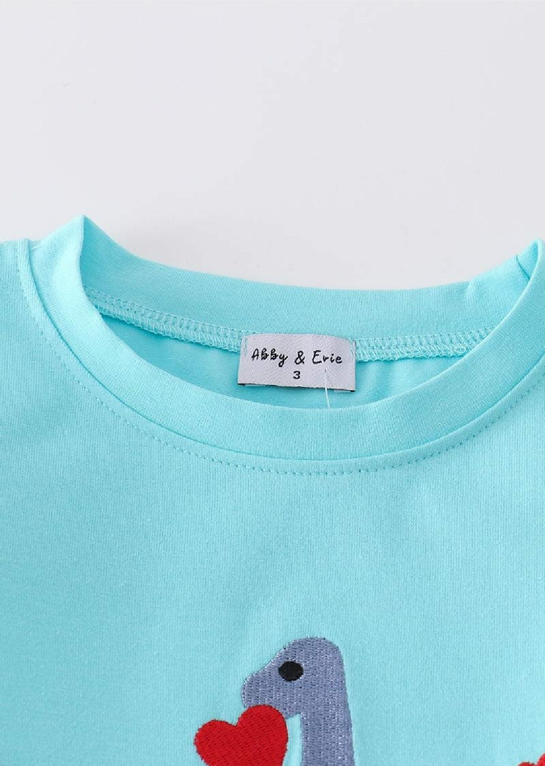 Boy's Boutique Blue Valentine's Day Dinosaur Heart Embroidery Embroidered 2 Piece Pant Set Outfit Matching Sibling