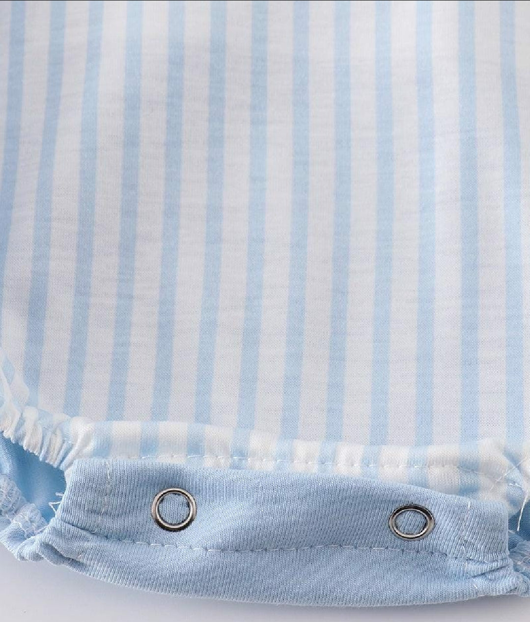 Hop into Easter with this adorable blue bunny applique stripe boy bubble! Perfect for your little one's Easter egg hunt or springtime festivities, this outfit will keep them looking cute and comfortable. Made with soft, high-quality fabric, it features a playful bunny design and classic stripes. Hop to it!