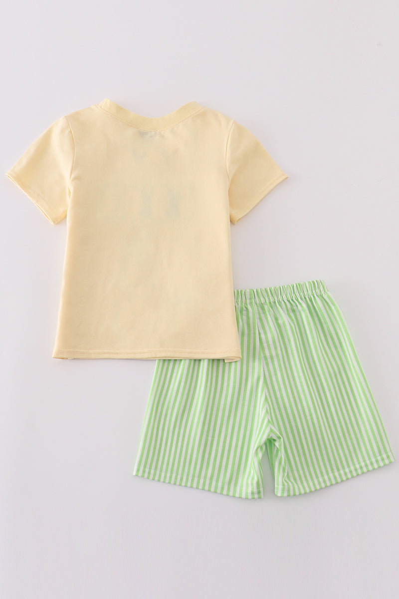 Boy's Boutique Easter French Knot Bunny Bunnies Applique Embroidered Embroidery Two Piece Short Outfit Matching Sibling