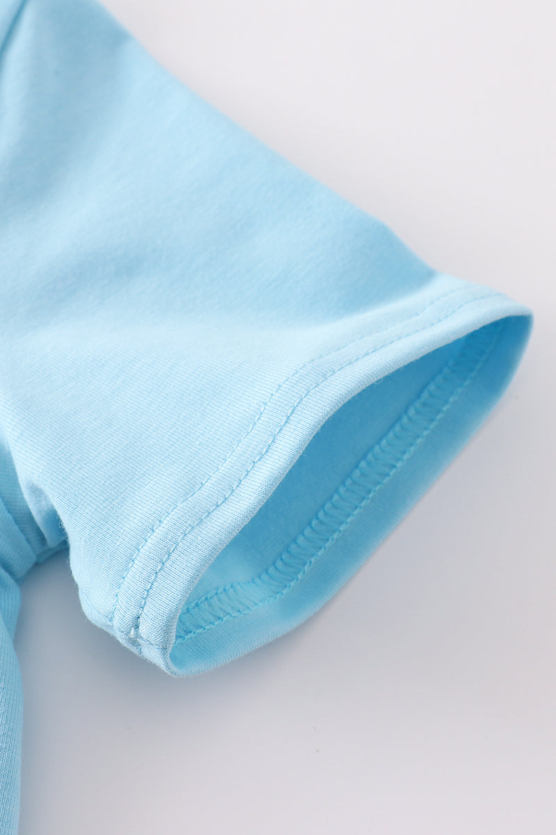 Dress your little man in the playful Blue Easter Cross Embroidery Boy Set. With green crosses French knot embroidery on the front and fun Easter motif, this set is perfect for any spring occasion. Made with high-quality materials, it's comfortable for all-day wear. Perfect for your little hipster!