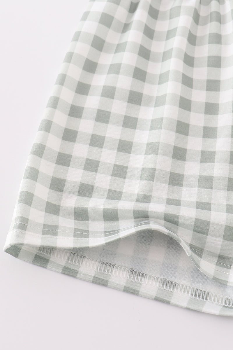 Boy's Boutique Green Blue Easter Cross French Knot Embroidered Embroidery Gingham 2 Piece Outfit Set Matching Sibling