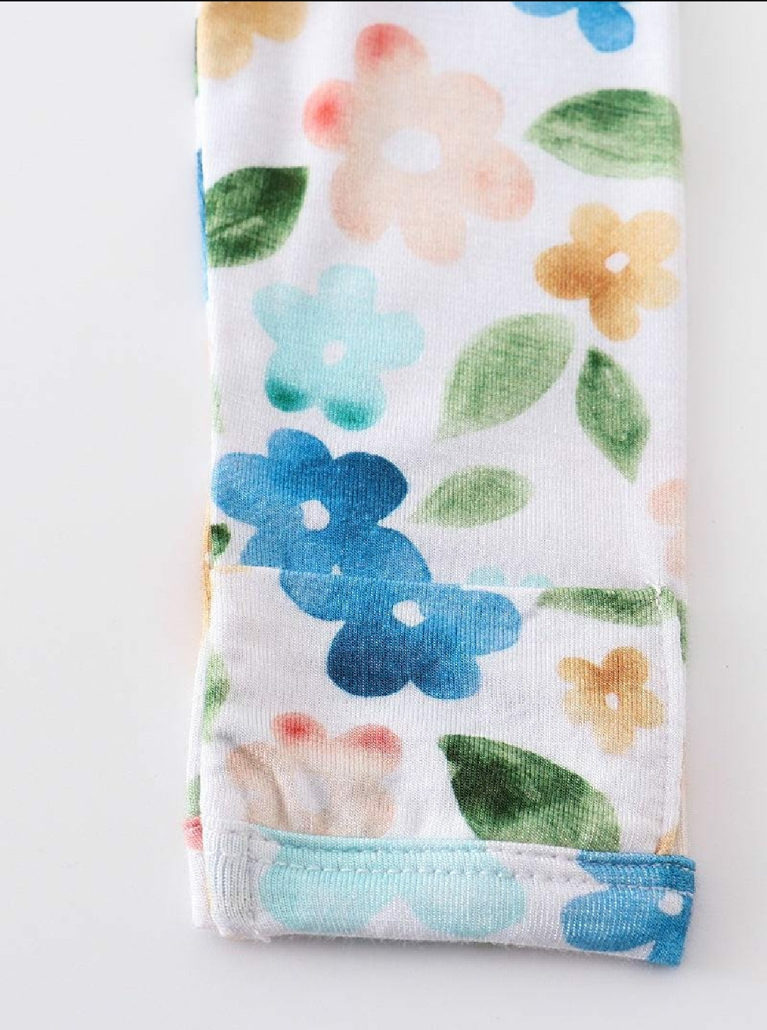 Girl's Boutique Blue Floral Print Bamboo Baby Knot One Piece Outfit And Matching Headband