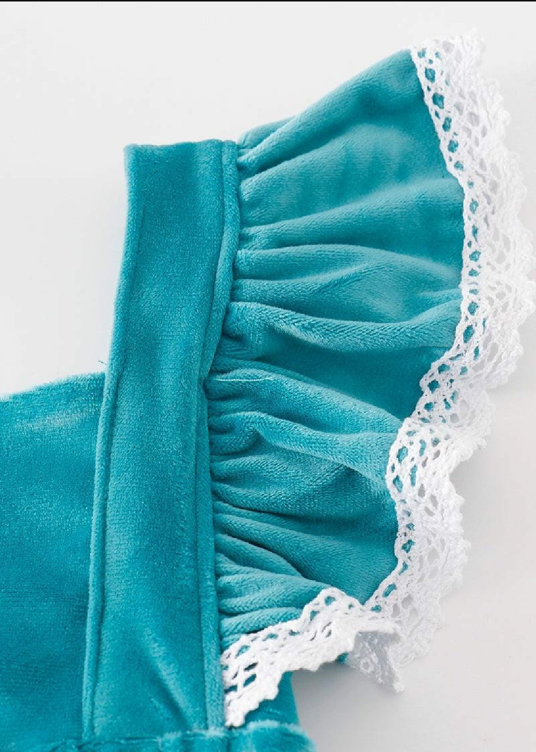 Girl's Boutique Blue Velvet Sunflowes Lace Embroidered Embroidery Bubble Romper Matching Sibling