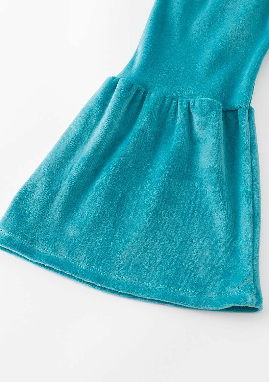 Girl's Boutique Blue Velvet Sunflowes Lace Embroidered Embroidery Two Piece Flare Pants Set Outfit Matching Sibling