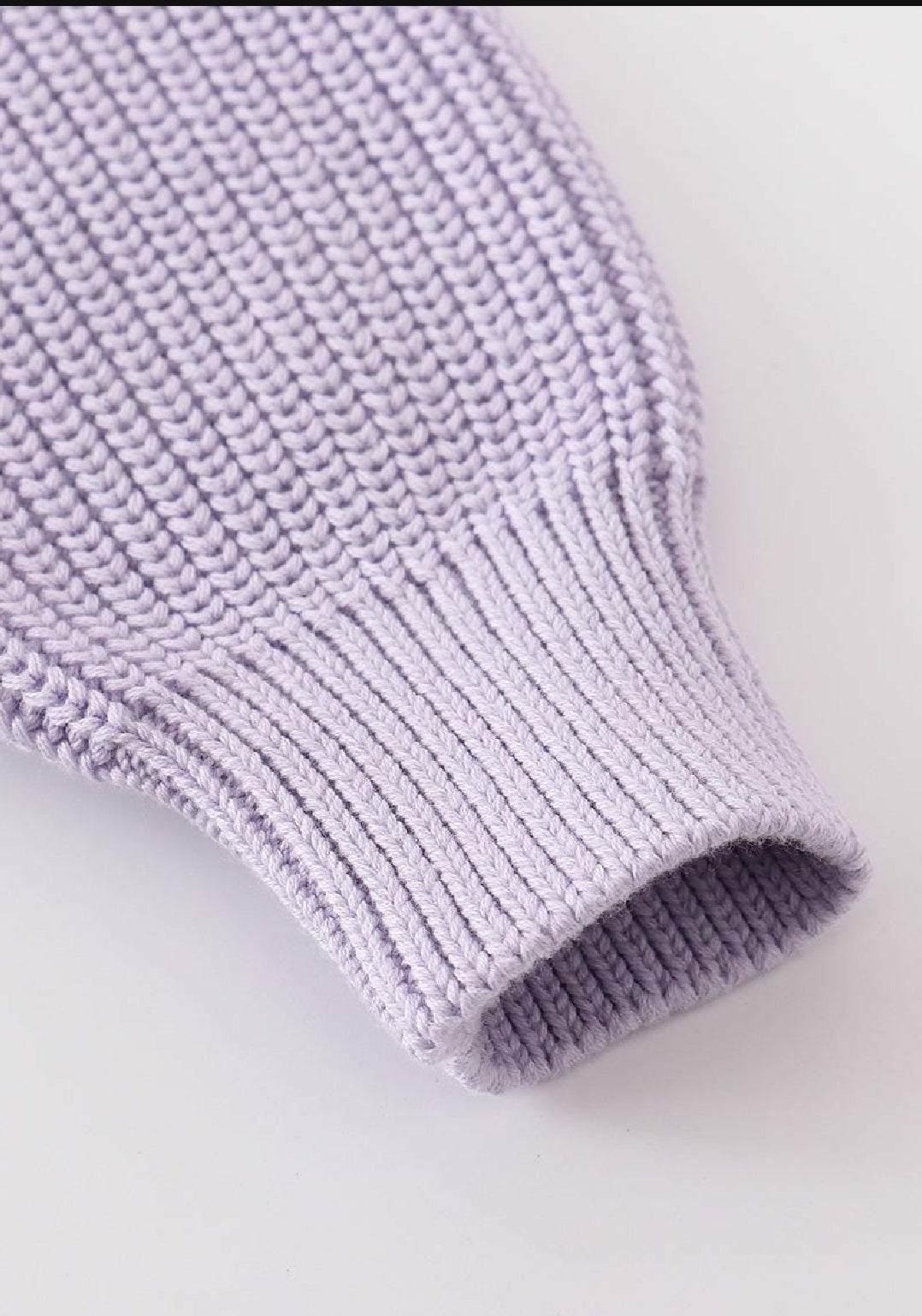 Girl's Boutique Easter Purple Hand-Embroidery Bunny Pullover Sweater Matching Sibling