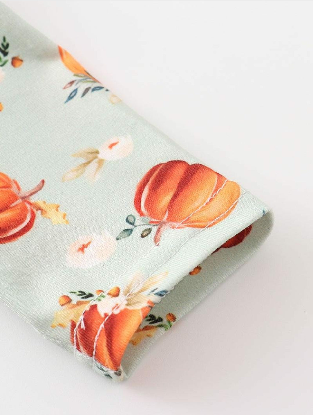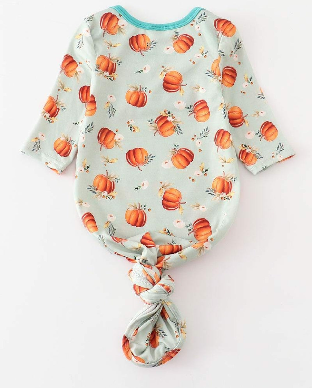 Girl's Boutique Green Pumpkin Fall Print Bamboo Baby Knot One Piece Outfit