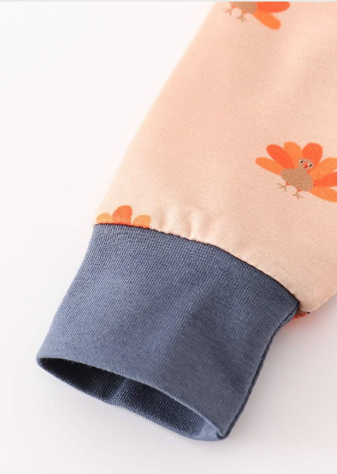 Girl's Boutique Khaki Turkey Print Zip Up Thanksgiving Fall Romper Outfit Matching Sibling