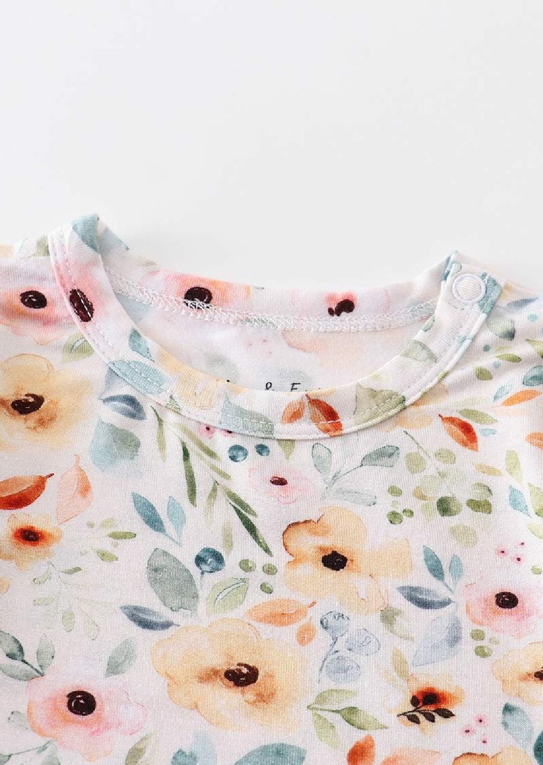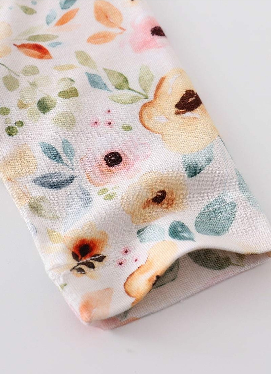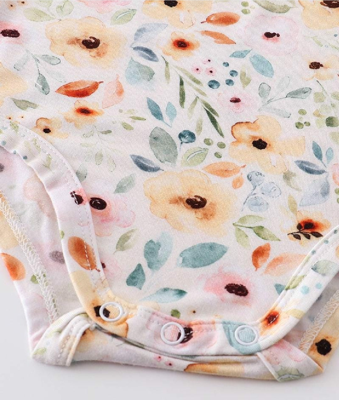 Girl's Boutique Mustard Floral Print Bamboo Baby Bubble Romper One Piece Outfit
