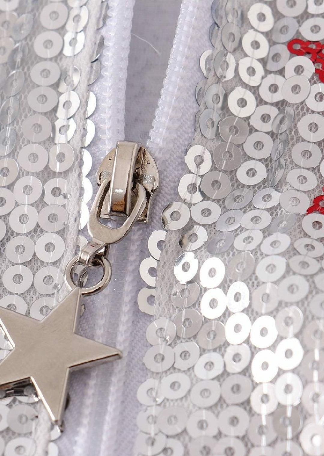 Girl's Boutique Patriotic Star Sequin Jacket Coat 4th Of July Dance Cheer Zip Up