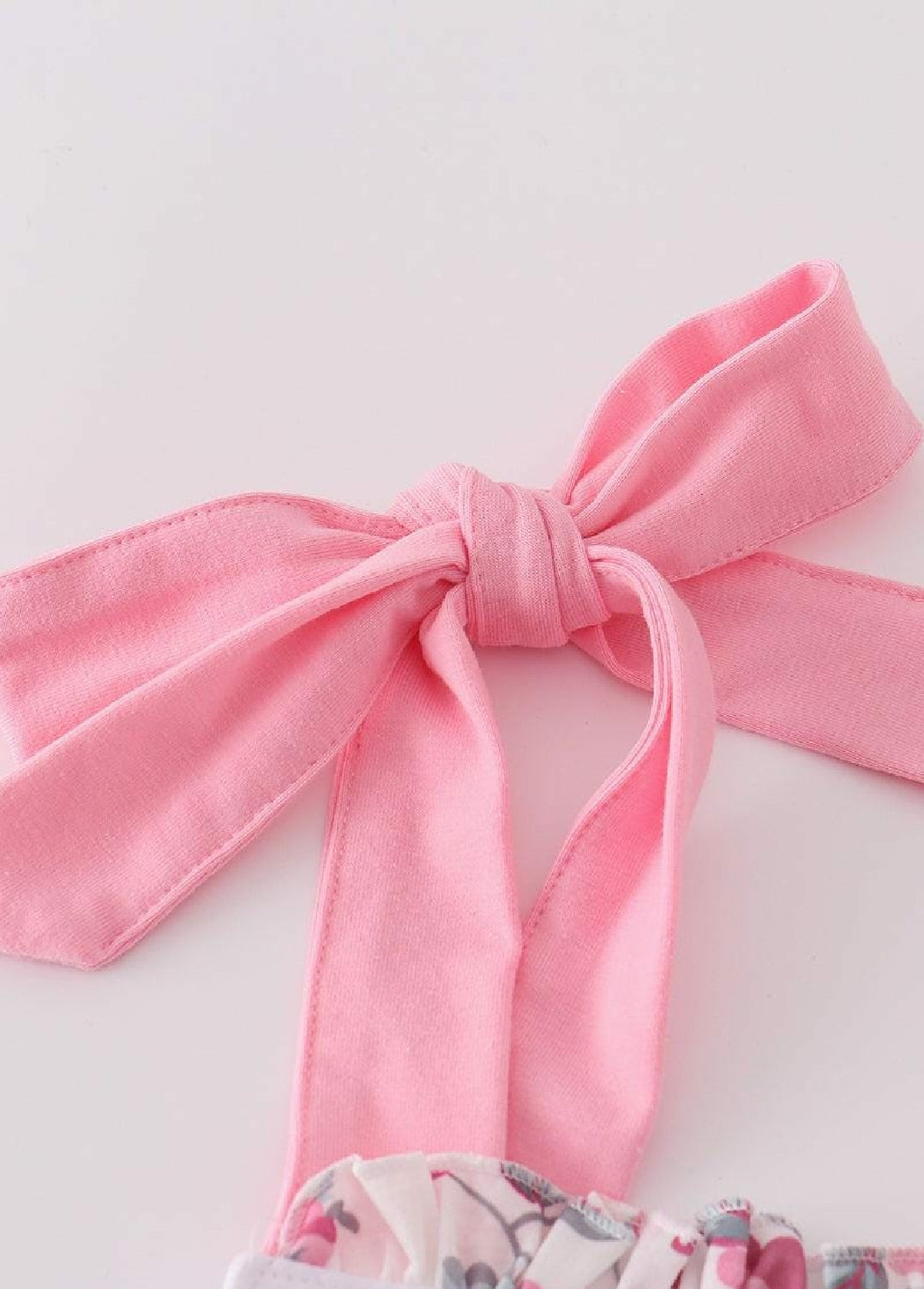 Girl's Boutique Pink Floral MAMA'S GIRL Embroidered Embroidery Ruffle Shorts Set Outfit Matching Sibling