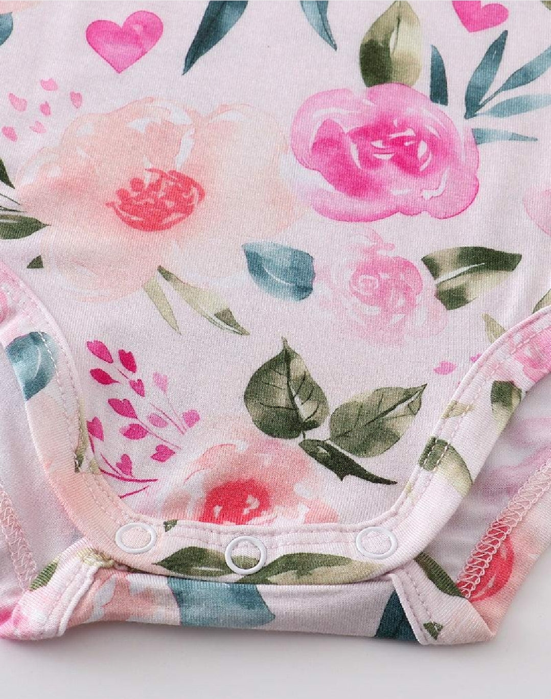 Girl's Boutique Pink Floral Print Bamboo Baby Bubble Romper One Piece Outfit