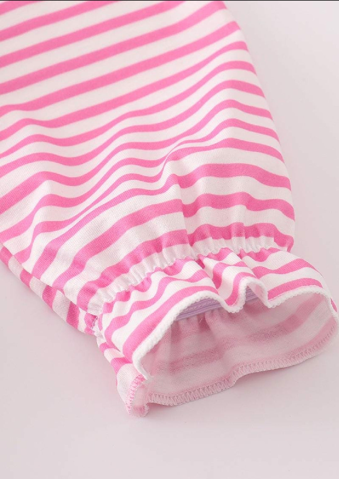 Girl's Boutique Pink Stripe Valentine Heart XOXO Embroidery Embroidered Pant Set Matching Sibling