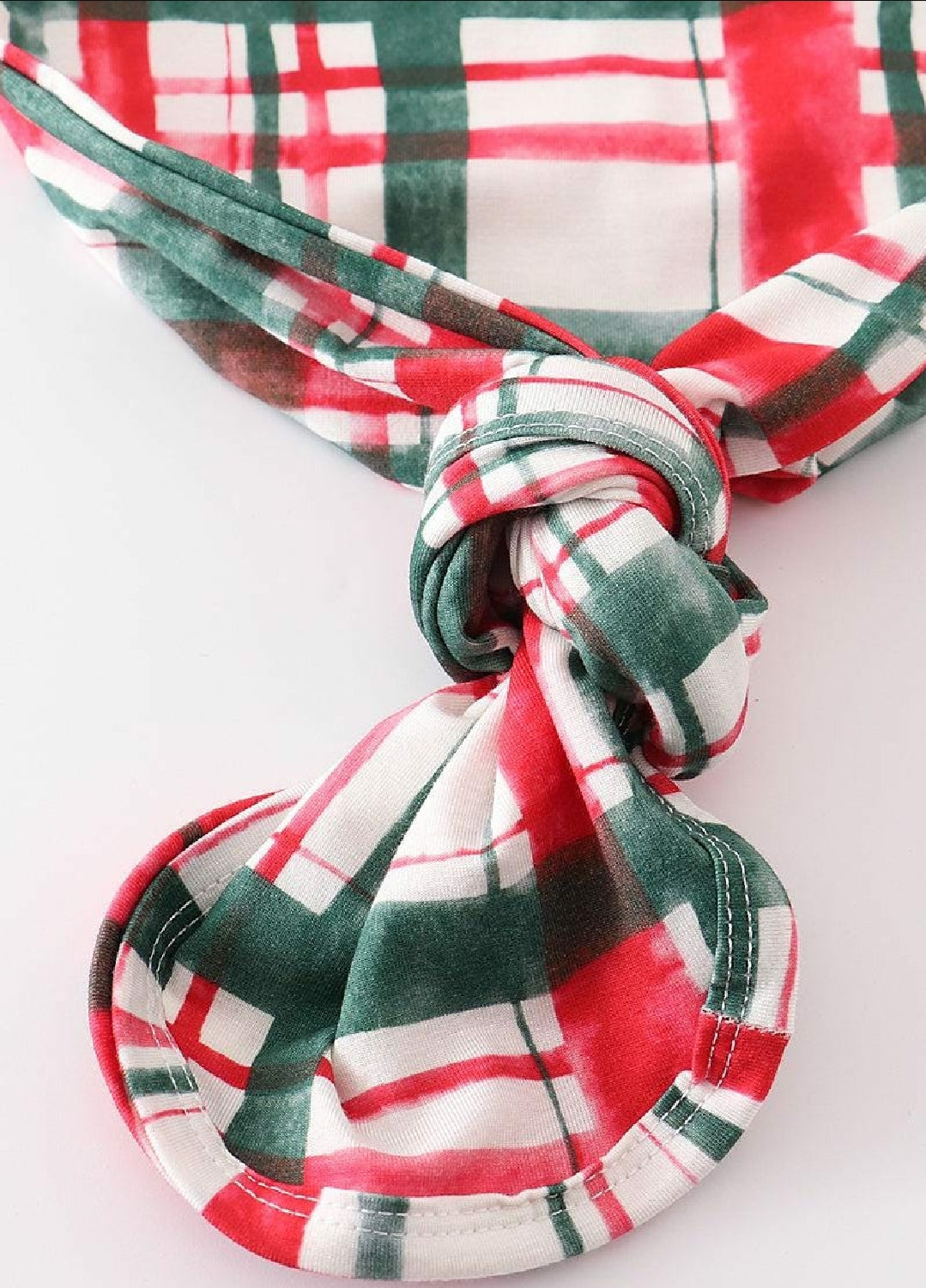 Girl's Boutique Red And Green Plaid Print Christmas Baby Knot One Piece Outfit And Matching Headband